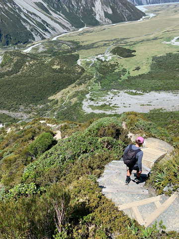 À mi-pente, les jambes flageolent et il nous reste encore les 2000 marches!